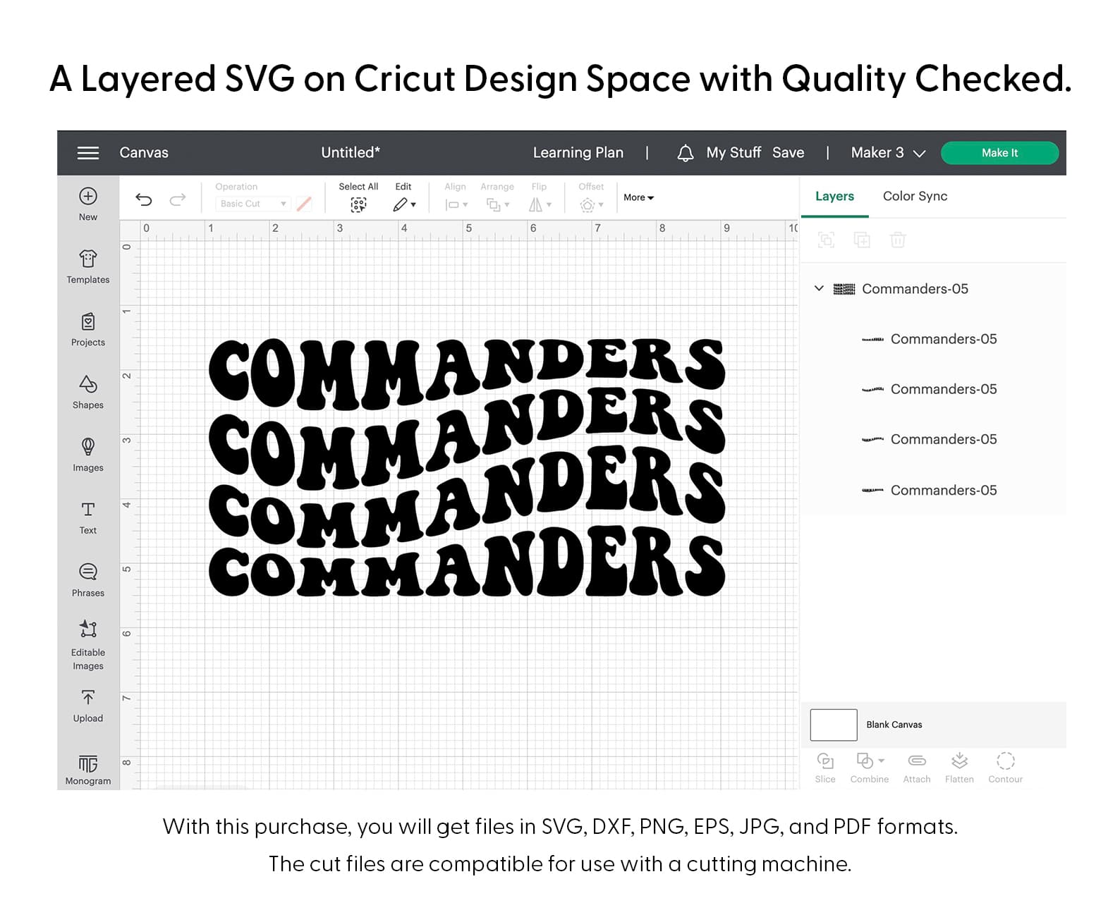 Make team crafts pop with Commanders Wavy Stacked SVG PNG, featuring groovy wavy stacked lettering and bold burgundy and gold colors for standout fan projects. Instantly downloadable and high-resolution, this eye-catching design is perfect for Cricut, Silhouette, and all major cutting machines—ideal for shirts, mugs, banners, and spirited gifts. Get a modern, retro-inspired look for any Washington Commanders creation.