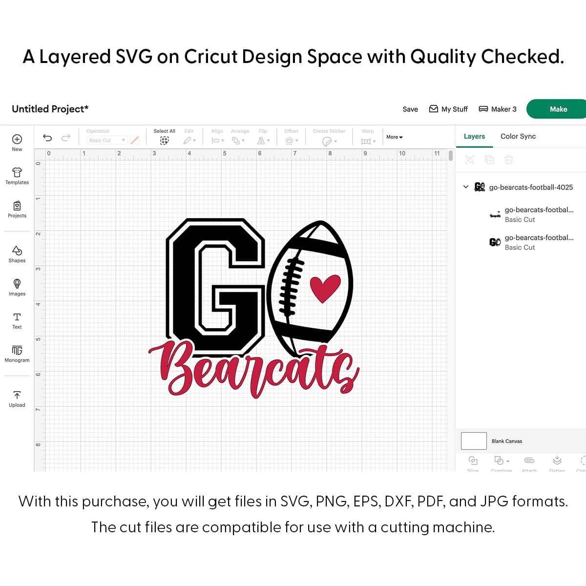 Show your Bearcats pride with our Go Bearcats Football SVG collection! These high-quality, layered SVG designs are perfect for creating custom t-shirts, mugs, banners, and more. Compatible with popular design software, our Go Bearcats Football SVG files make customization simple, adding a fierce Bearcats spirit to any project. Ideal for fans eager to cheer on the Bearcats in bold style!
