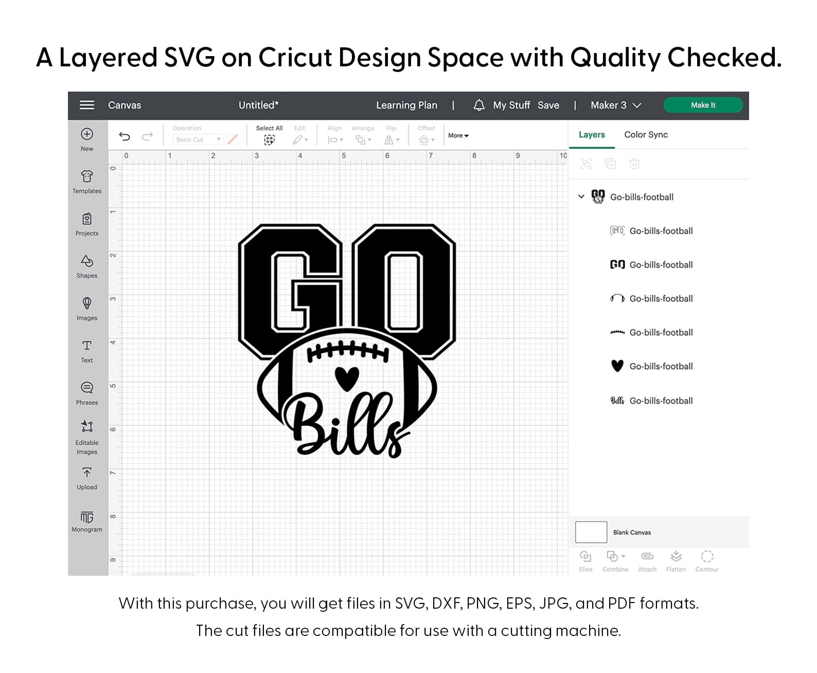 Cheer on your team with this Go Bills Football SVG PNG, featuring spirited Bills lettering and dynamic football graphics for standout fan projects. Perfect for Cricut, Silhouette, and all major cutting machines, this high-resolution file is great for custom shirts, mugs, banners, tailgate supplies, and special gifts. Instantly downloadable and easy to use, it’s the go-to choice for Buffalo fans who want bold, personalized crafts for game day and beyond.