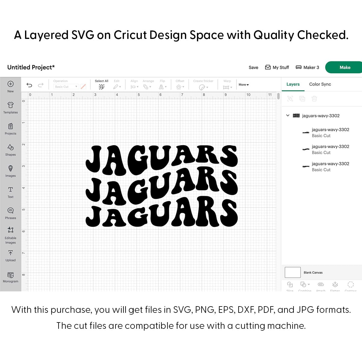 Bring some Jacksonville Jaguars flair to your projects with our “Jaguars Wavy SVG”! This eye-catching design features the Jaguars’ iconic logo in a dynamic, wavy pattern perfect for any fan. This SVG file is ideal for customizing apparel, home decorations, and more, and is compatible with Cricut and Silhouette machines. Create unique, personalized items that show off your team spirit in style!
