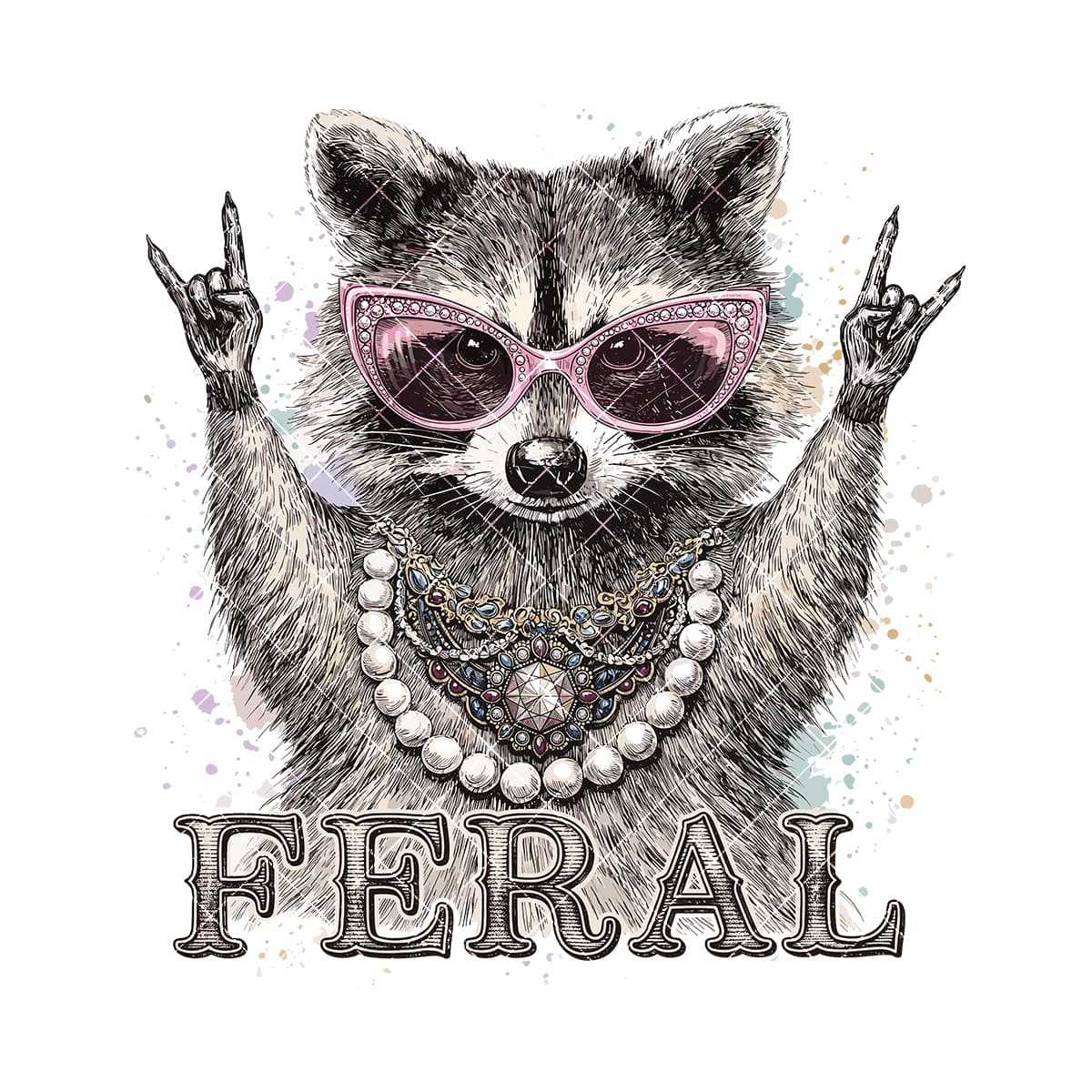 Stay Wild Feral Raccoon Sublimation Design PNG SVG: Rock Raccoon with Pink Sunglasses and Pearls