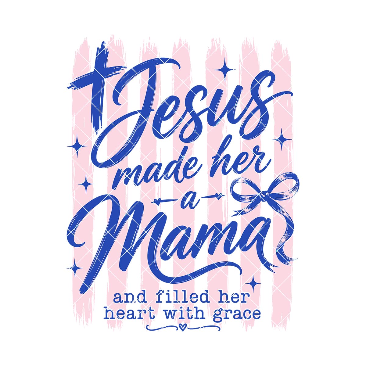 Jesus Made Her A Mama Sublimation Design PNG: Christian Faith Mom Pink Stripes Bow